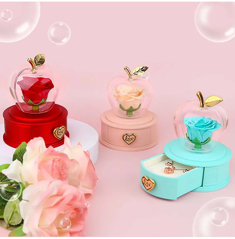 Surpreenda alguém especial com a Caixa Maçã com Rosa Eterna, uma combinação perfeita de elegância e significado. Esta charmosa caixa em formato de maçã abriga uma rosa preservada, representando sentimentos que perduram e um carinho que nunca se desfaz.