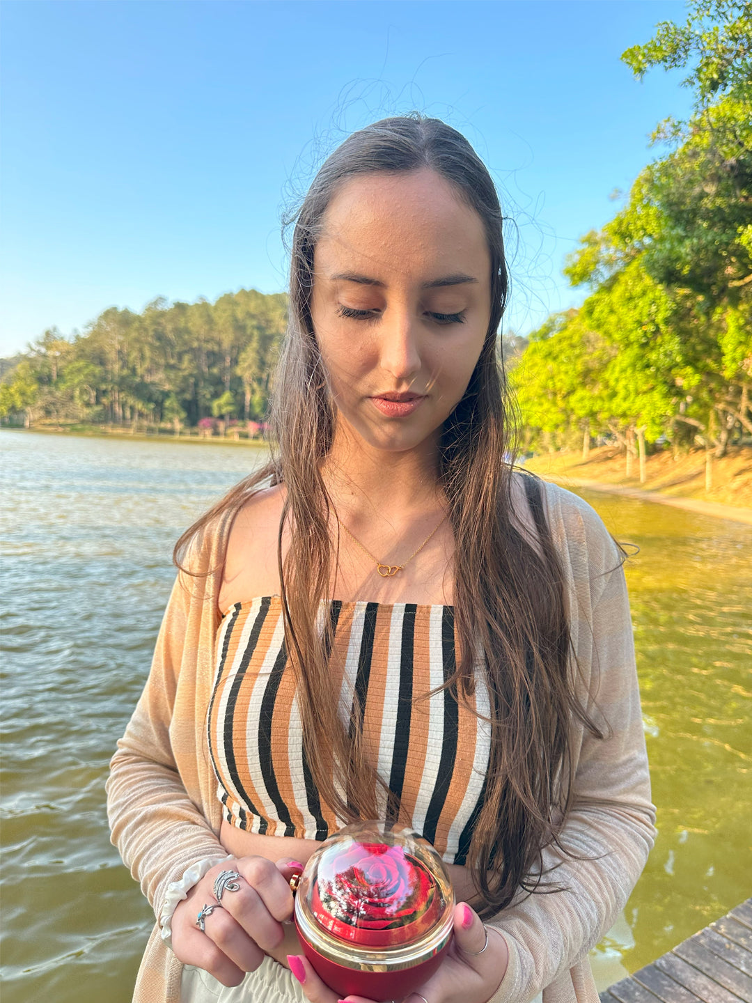 Com um mecanismo rotativo que revela a rosa eterna em seu interior, esta caixa combina funcionalidade e estética. Disponível em cores como Vermelho Clássico, Azul Bebê, Rosa e Azul Escuro, você pode escolher a tonalidade que melhor representa seus sentimentos ou a preferência de quem será presenteado.PlayParty