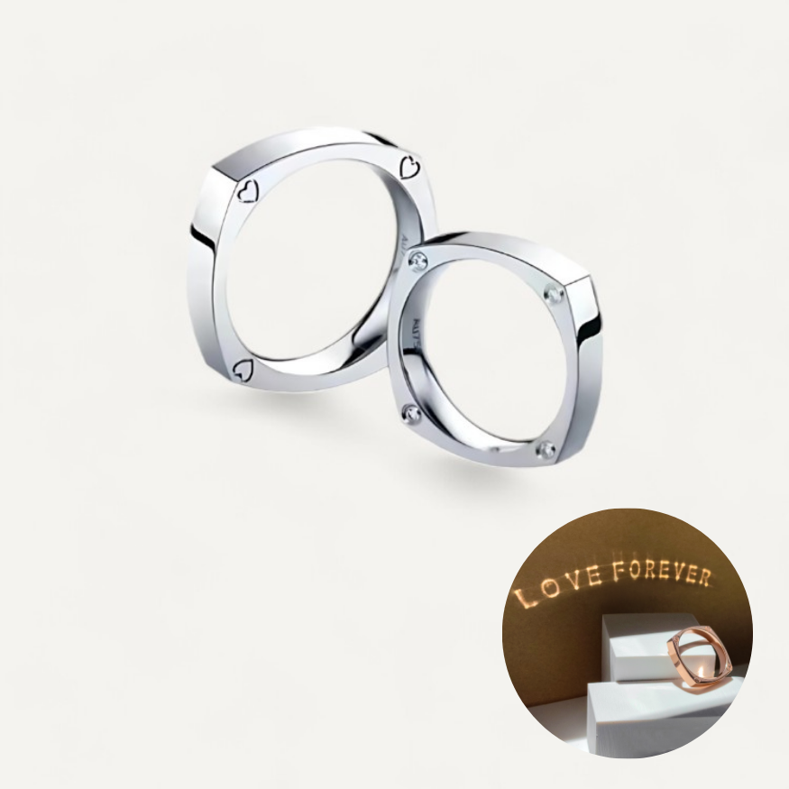Com a projeção oculta da palavra "love" que brilha sob a luz, esses anéis simbolizam seu amor eterno. Feitos de Prata 925, disponíveis nas cores rosa dourado e prata, esses anéis clássicos e elegantes mostram seu afeto de uma maneira única e encantadora.